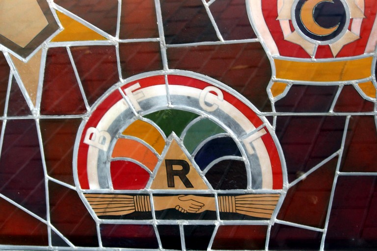 Il s'agit d'un très ancien et sublime bâtiment classé appartenant à la P.I.E.R soit Parfaite Intelligence et Etoile Réunies, une loge du Grand Orient de Belgique.