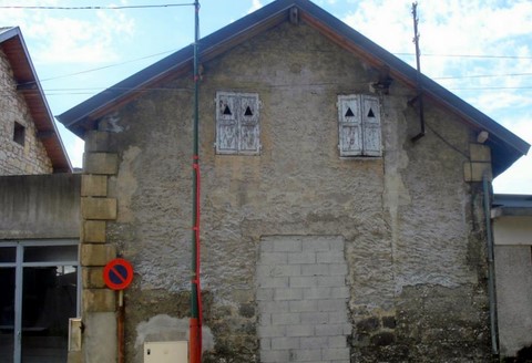 Aix hier : Temple maçonnique rue Vaugelas à Aix les Bains de la fin du XIXème siècle, aujourd"hui hangar d'un magasin de cycles. A noter les volets aux ouvertures triangulaires.